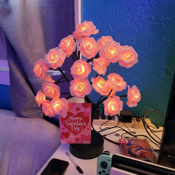 My boyfriend gave me this for Valentine's Day and I literally started crying. It's so beautiful in person and the glow is perfect. I turn it on every single night now.